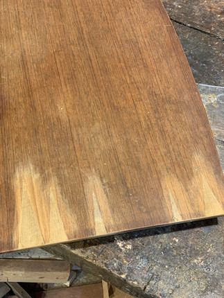 תהליך השיפוץ היה מורכב. כל אחד משלושת השולחנות דרש טיפול שונה, היה עלי לנוסעו למחסן שמוכר פורניר לנגריות (פורניר הוא קליפת עץ דקיקה אשר מודבקת על פלטת עץ זול ופשוט יותר).